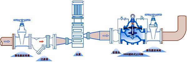 七、 安装示意图 300X隔膜式缓闭止回阀